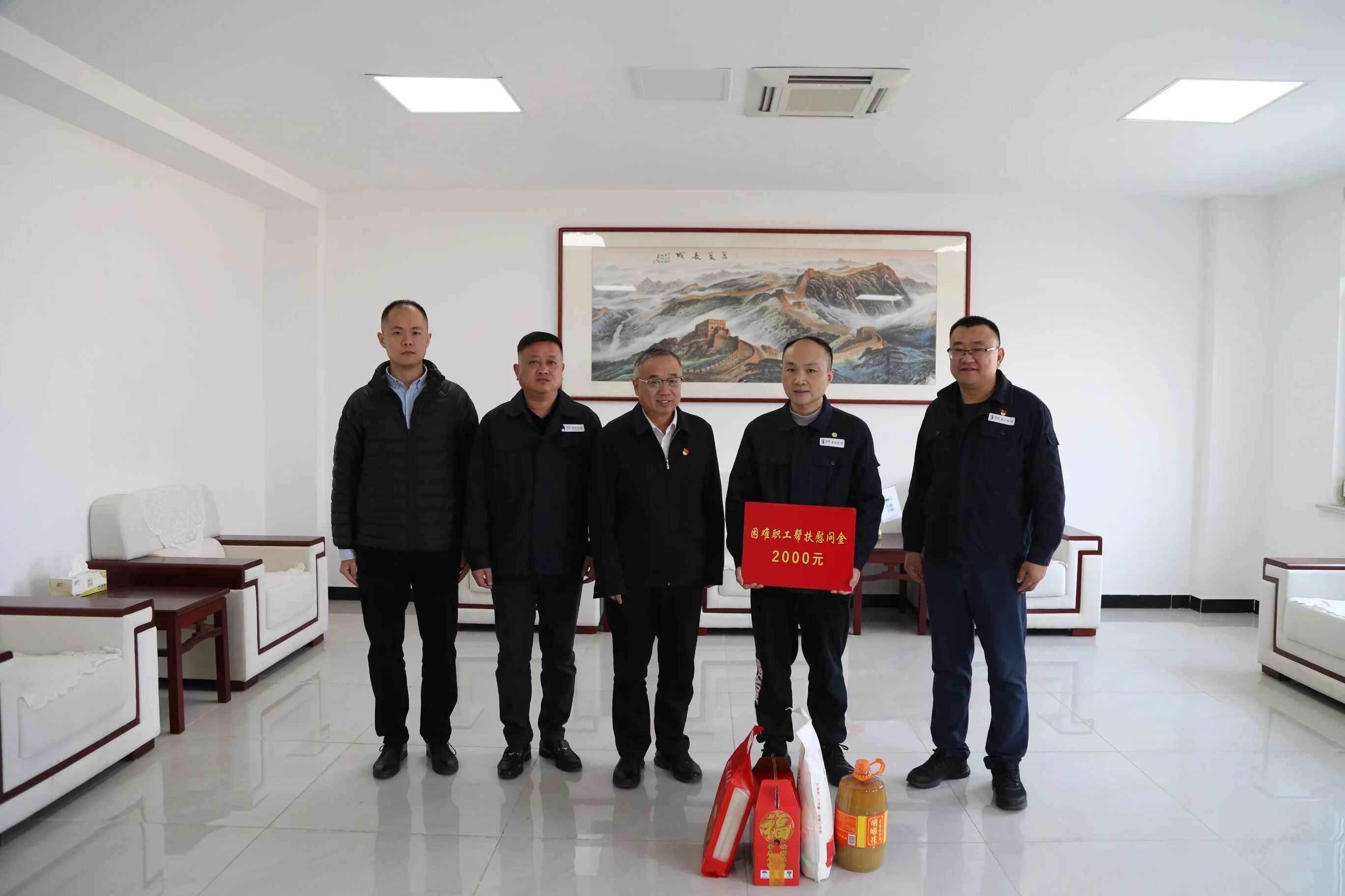“目前工作生活上有什么困難?家里父母身體怎么樣?要提振信心積極面對,把日子過好?!本渚涫巧?、字字皆關(guān)心。慰問組與困難職工親切交談,詳細詢問當前生活和工作情況,鼓勵職工保持樂觀向上的心態(tài),積極面對生活中的困難,并為職工送上米、面、油等慰問品和慰問金,送上新春祝福。