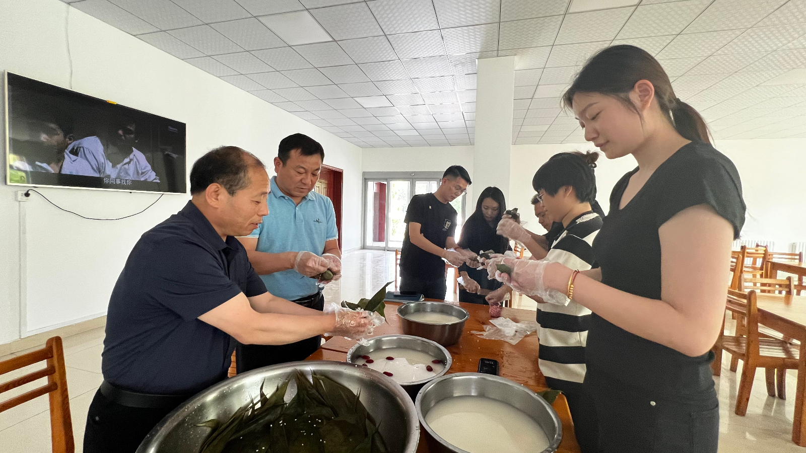 活動現(xiàn)場,大家齊聚一堂,其樂融融。工作人員提前準備了糯米、粽葉、紅棗、花生等豐富的食材,以及包粽子所需的工具。在專業(yè)師傅的示范指導下,員工們紛紛動手嘗試,折粽葉、填糯米、放紅棗、捆繩子,一道道工序有條不紊地進行著。