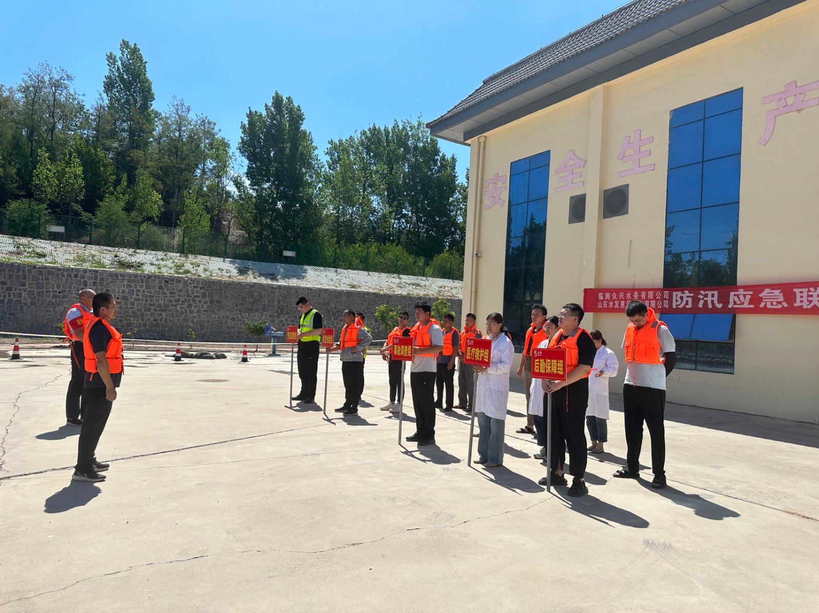 為切實(shí)提高應(yīng)急工作處置能力,在汛期到來(lái)之前做好防洪防汛預(yù)警,確保人身及設(shè)備的安全,6月27日,按照《臨朐眾興2024年“安全生產(chǎn)月”活動(dòng)實(shí)施方案》,臨朐眾興水務(wù)與惠源水務(wù)開(kāi)展防汛實(shí)戰(zhàn)演練,兩公司應(yīng)急救援指揮部及生產(chǎn)運(yùn)行一線員工20余人參加應(yīng)急演練。